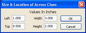 on Size and Position to open the Size and Location of Across Clues window.