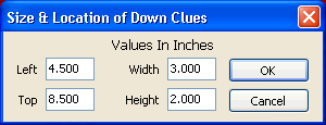 and Position to open the Size and Location of Down Clues window.