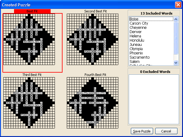 on the Save Puzzle button. You can zoom in on a puzzle fit by double clicking